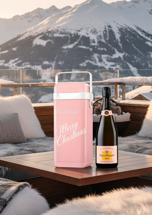 Wiederverwendbar und langlebig, hält der Clicquot Cooler den Yellow Label Brut für bis zu einer Stunde auf der perfekten Temperatur.
